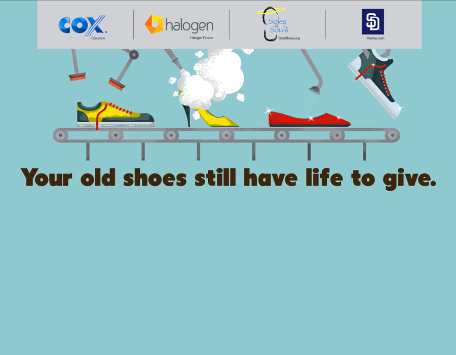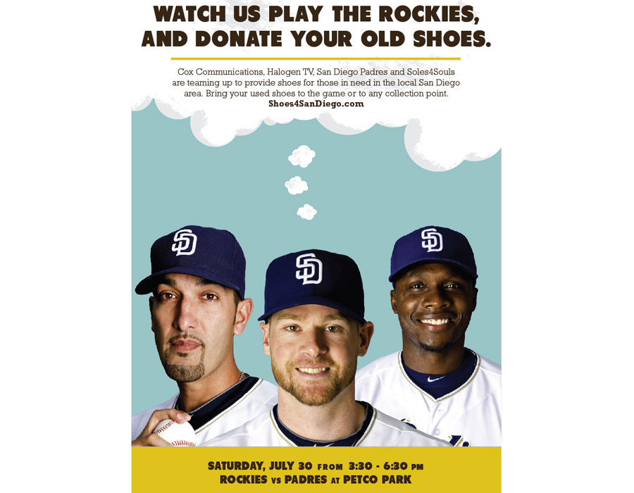 Cox Communications, The San Diego Padres and non-profit Soles 4 Souls collaborated to host a citywide giveback campaign benefiting local community charities and children abroad. Their challenge was to ensure effective and timely communications to all partners local patrons leading up to the Padres baseball game and final collection date that prompted donations of new or used shoes. We worked together to develop a multi-level marketing campaign including video, graphics, and event management to coordinate all three brands consistent messaging.